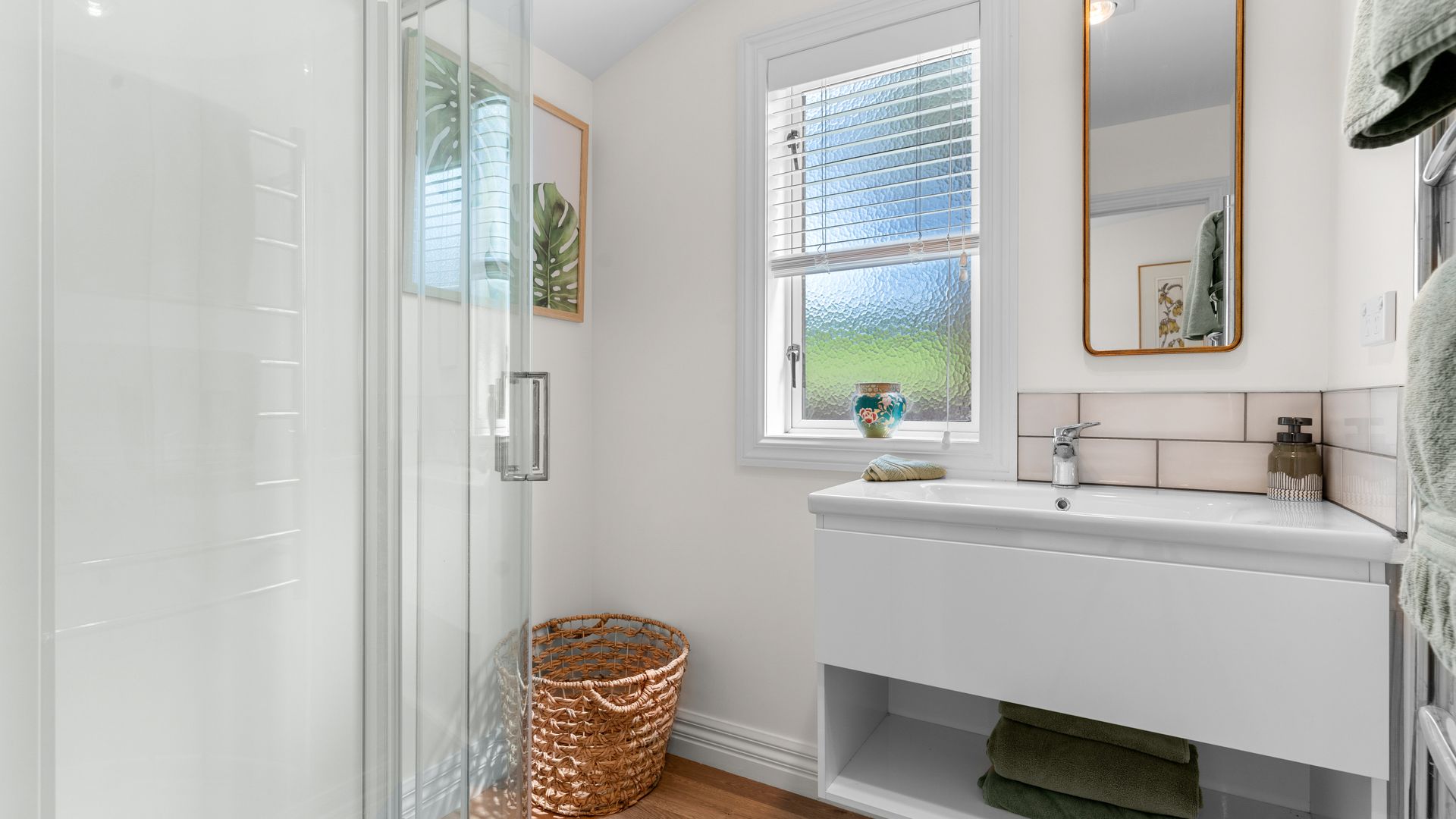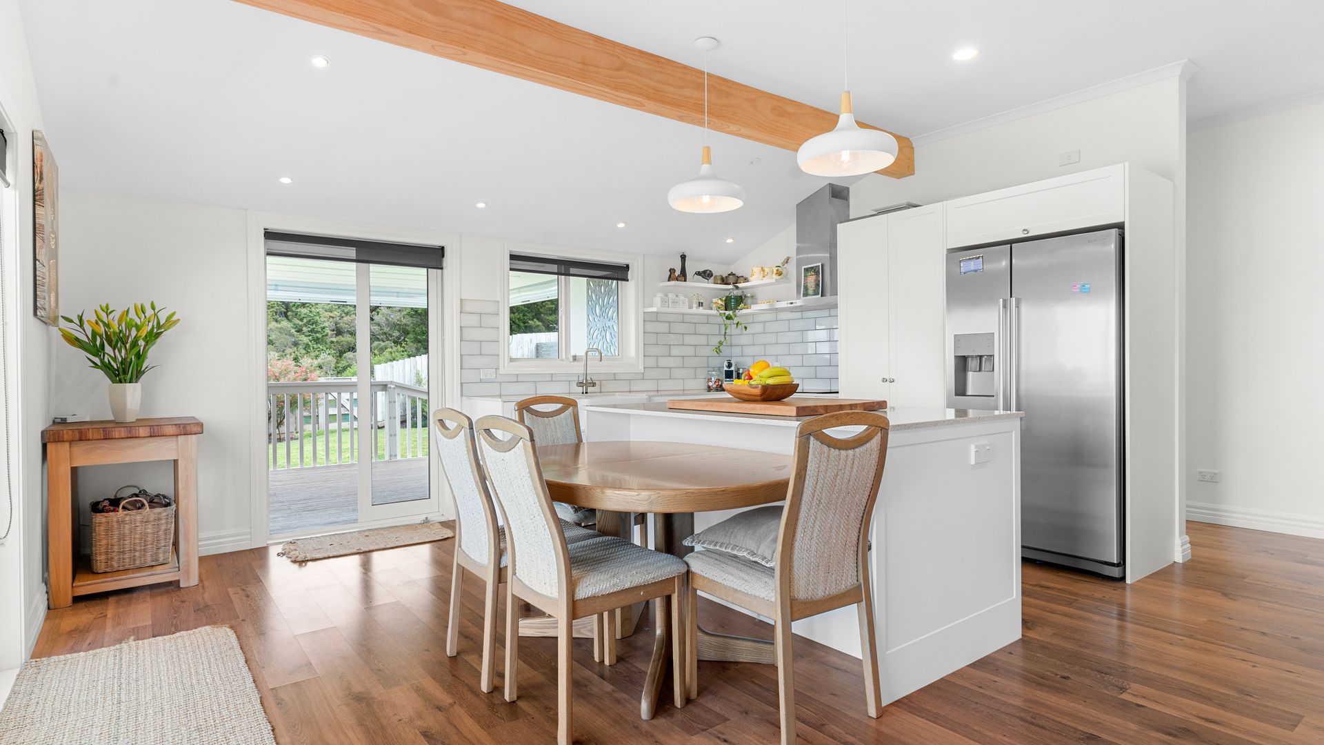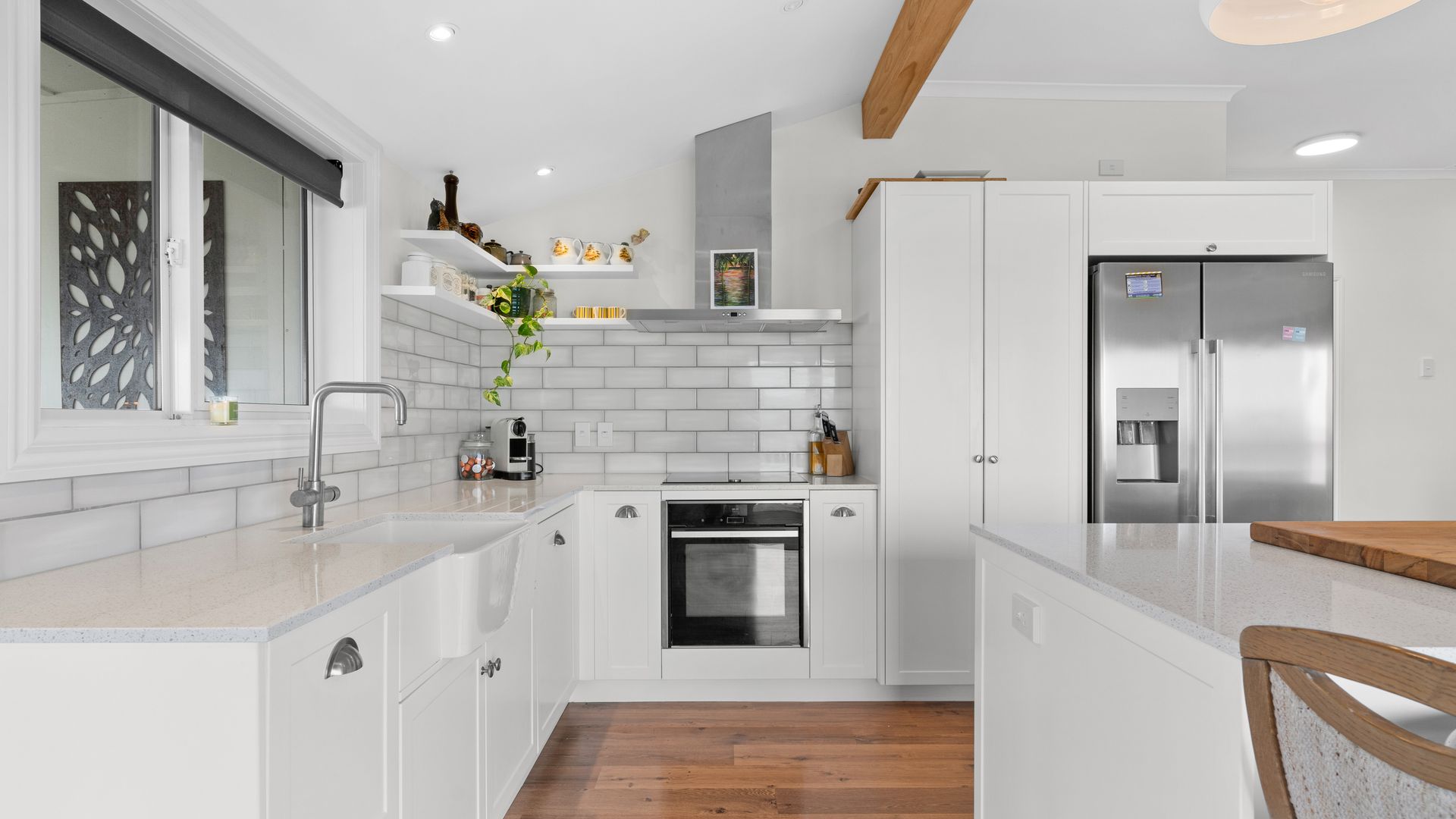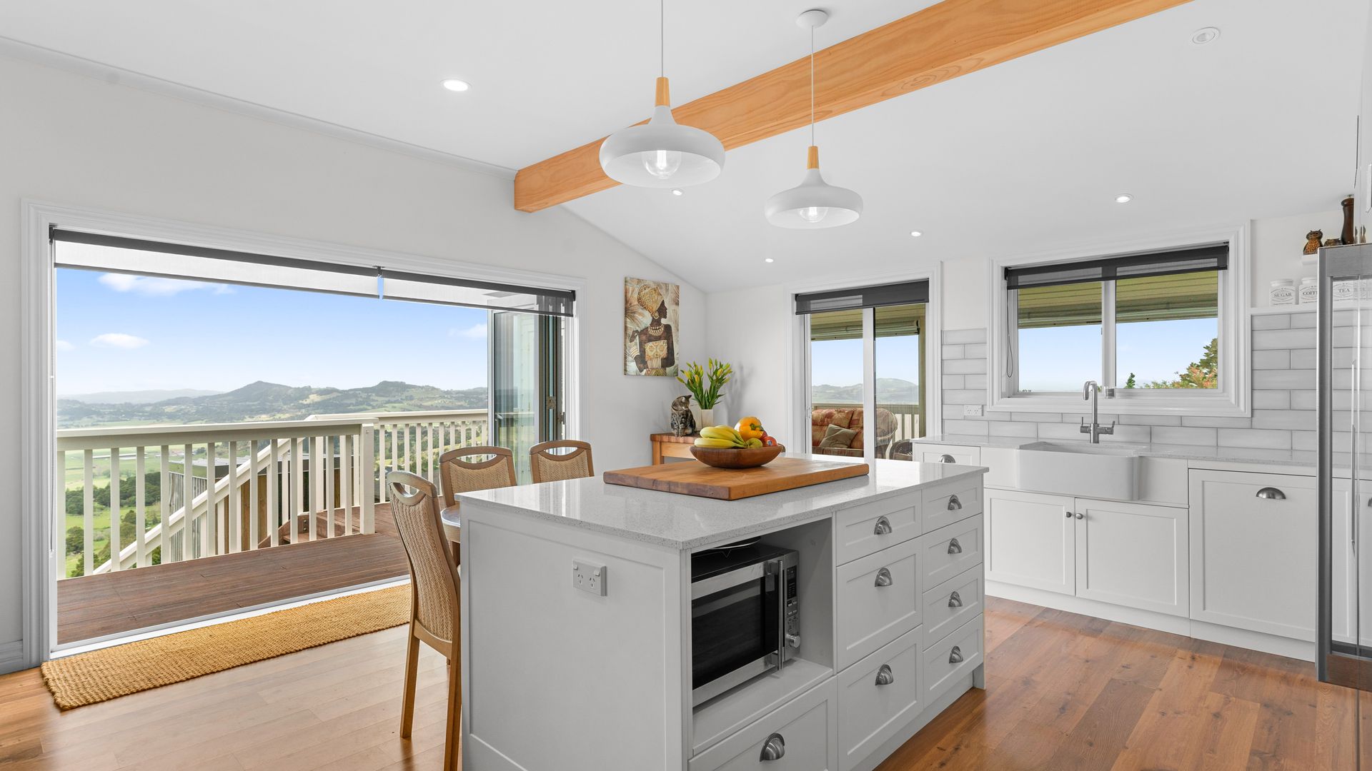 Inside, the home is crisp, contemporary, and impeccably kept. A designer shaker-style kitchen anchors the light filled living spaces, supported by two stylish bathrooms (including an ensuite) and three generous bedrooms. Every finish feels intentional. Broad decking and a sheltered outdoor room let you live the view in every season, with sunrises and moonrises that will change your life!