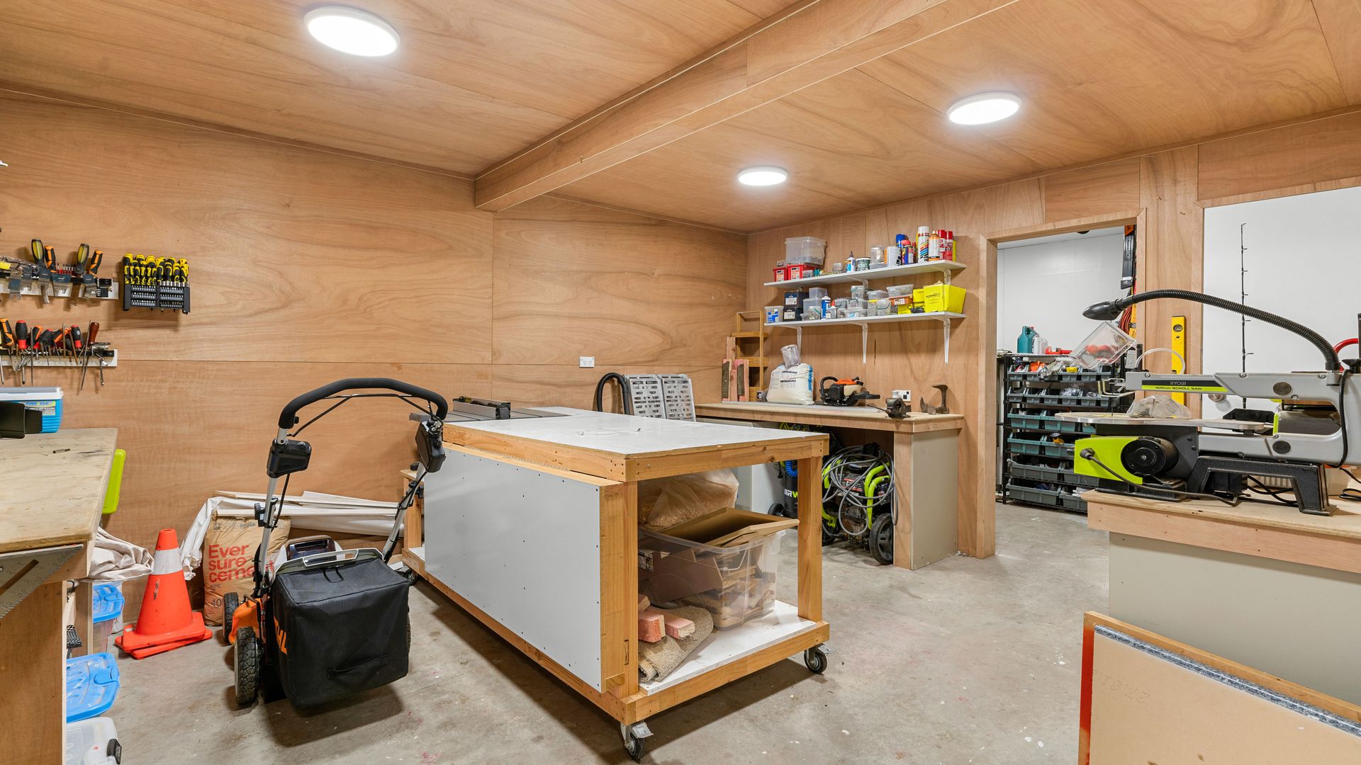 The infrastructure is next level. Under the house sits an immaculate double garage plus workshop - clean, spacious, and perfect for serious projects. A massive stand-alone shed adds more capability, while the well-positioned farm outbuilding (barn) supports stock or storage with ease. Parking is abundant, manoeuvring is simple, and the whole property feels organised and efficient.