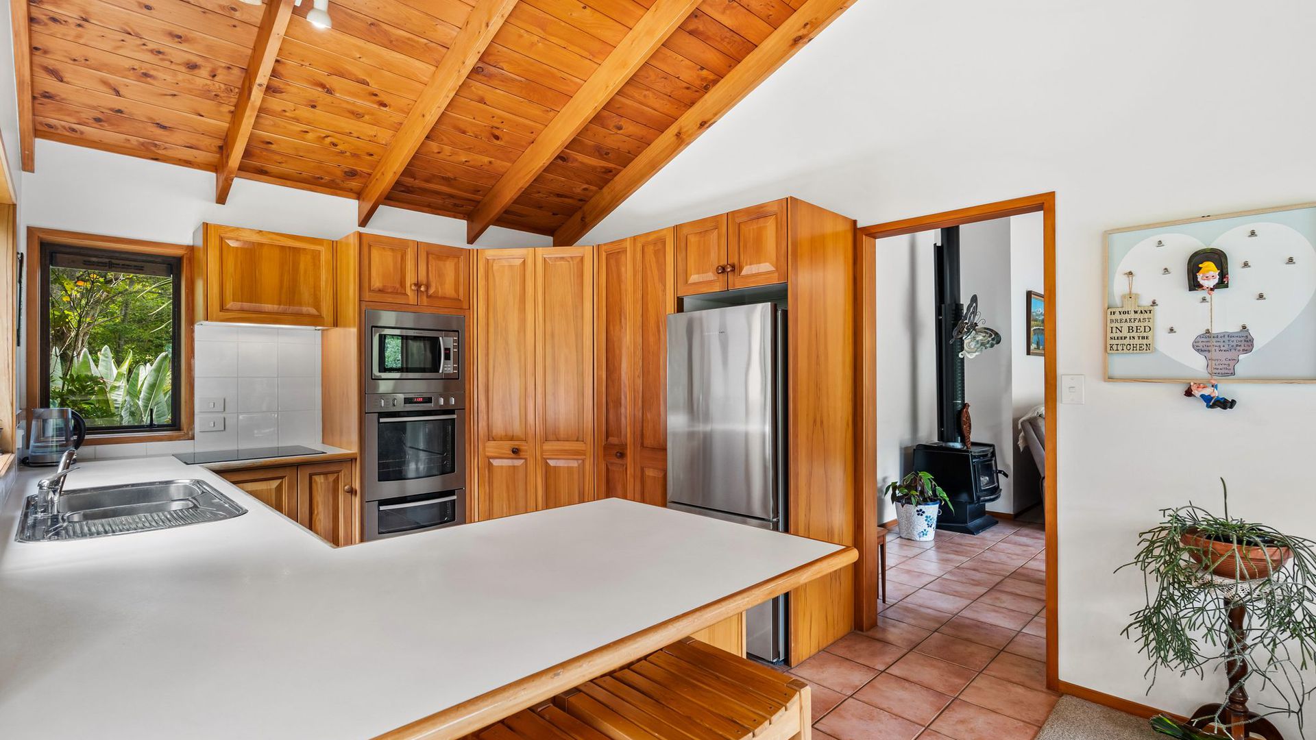 This immaculately presented home is single level and thoughtfully arranged for relaxed, everyday living. At its heart, the lounge is defined by a striking vaulted sarked ceiling, bringing warmth, height and architectural character. Generous windows capture the green outlook, filling the home with natural light and strengthening the indoor-outdoor connection.