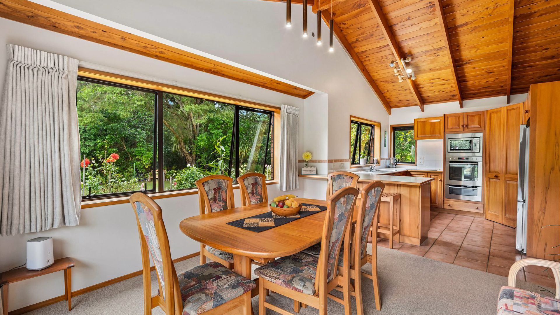 The rimu kitchen offers timeless appeal and practical design, positioned to anchor both family life and entertaining. It connects seamlessly to the dining and living zones, flowing to a sheltered patio that extends your living space outdoors.