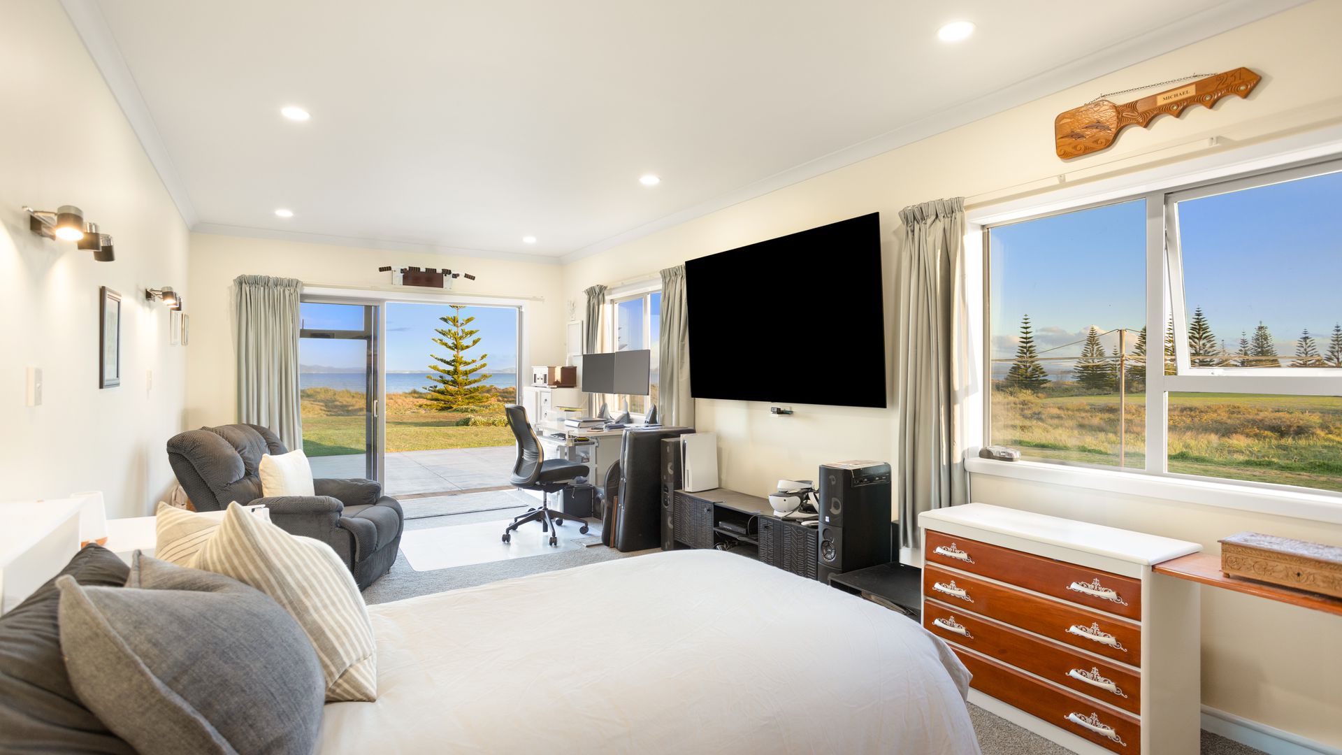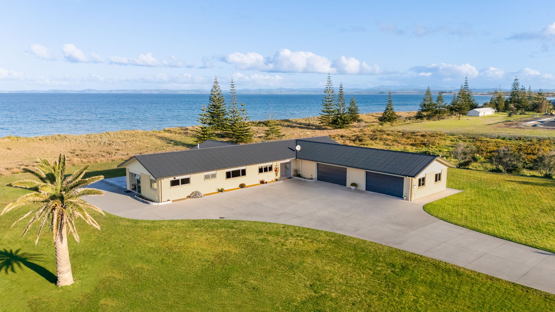 Adjacent to a reserve and set above the dunes with direct access to Tokerau Beach, this brick residence from 2017 occupies a rare 6,309sqm coastal holding on the coveted Karikari Peninsula. The scale is impressive, with 388sqm of solid construction, broad patios, and sliders that frame uninterrupted sea and headland views.