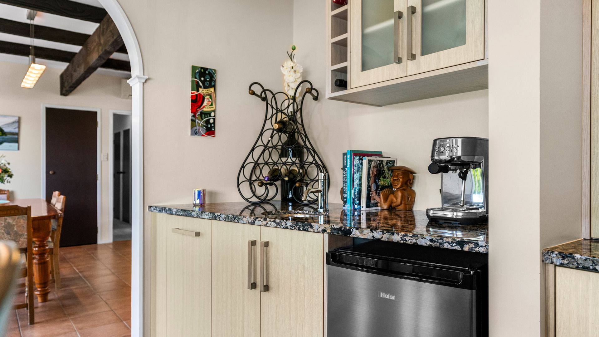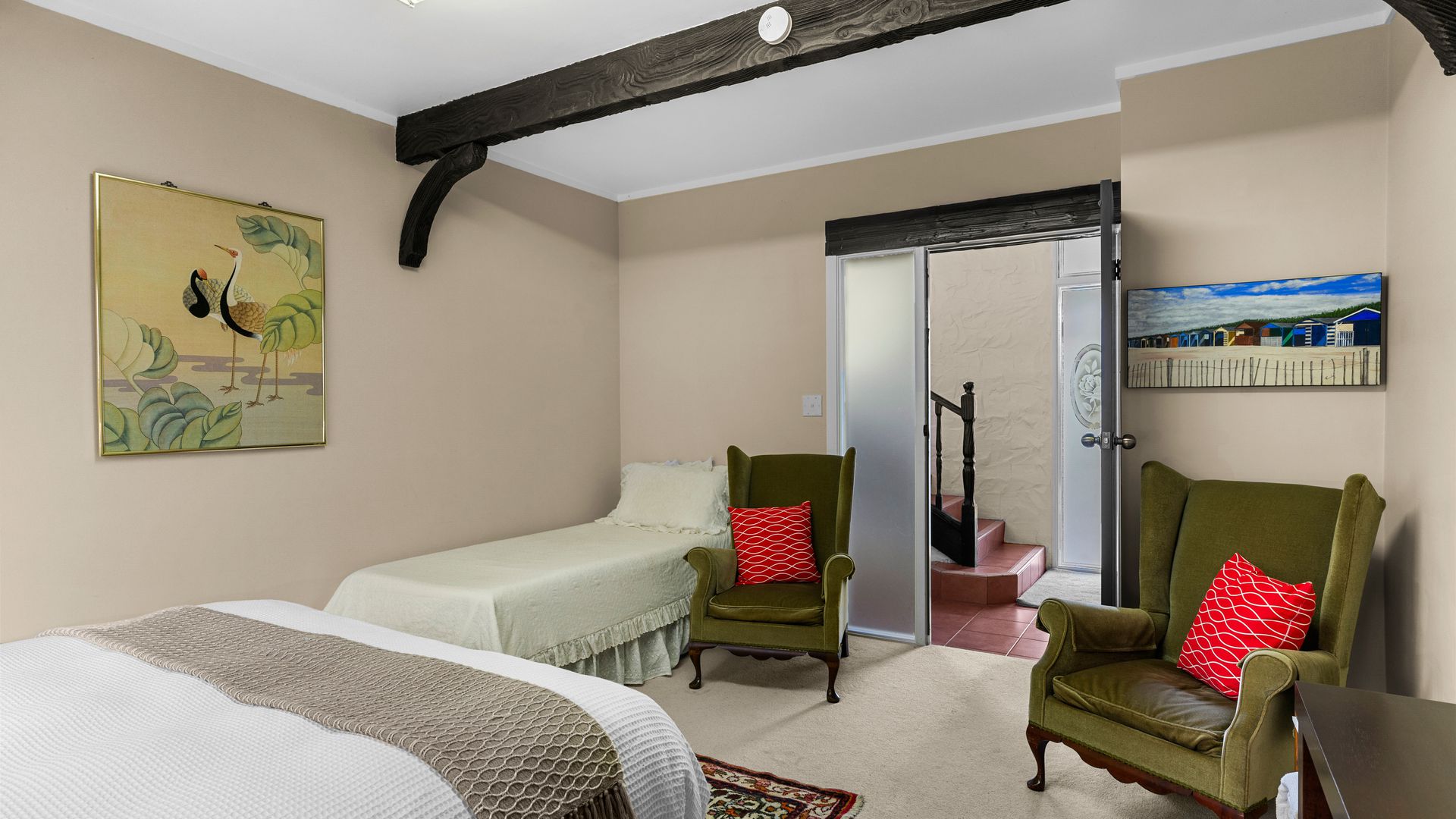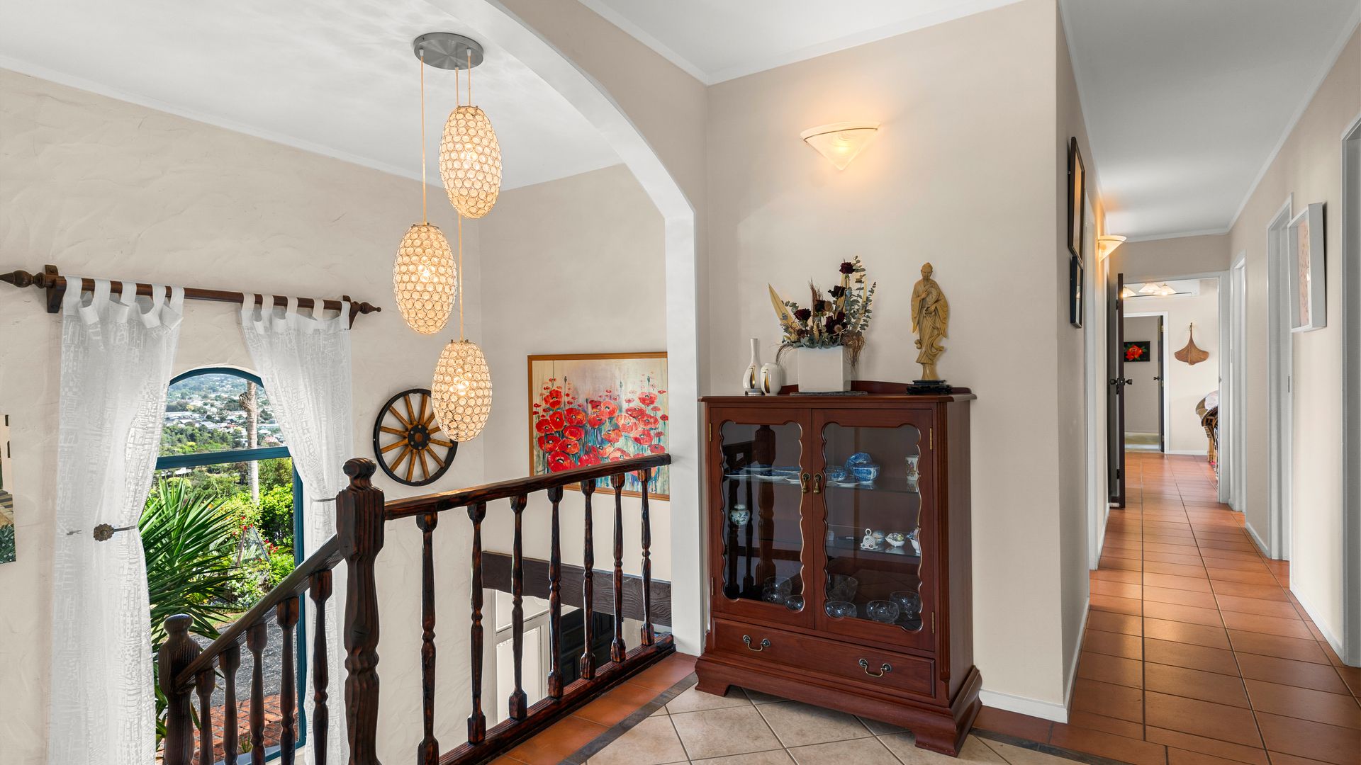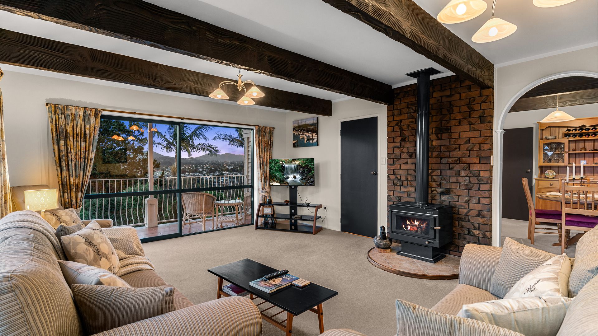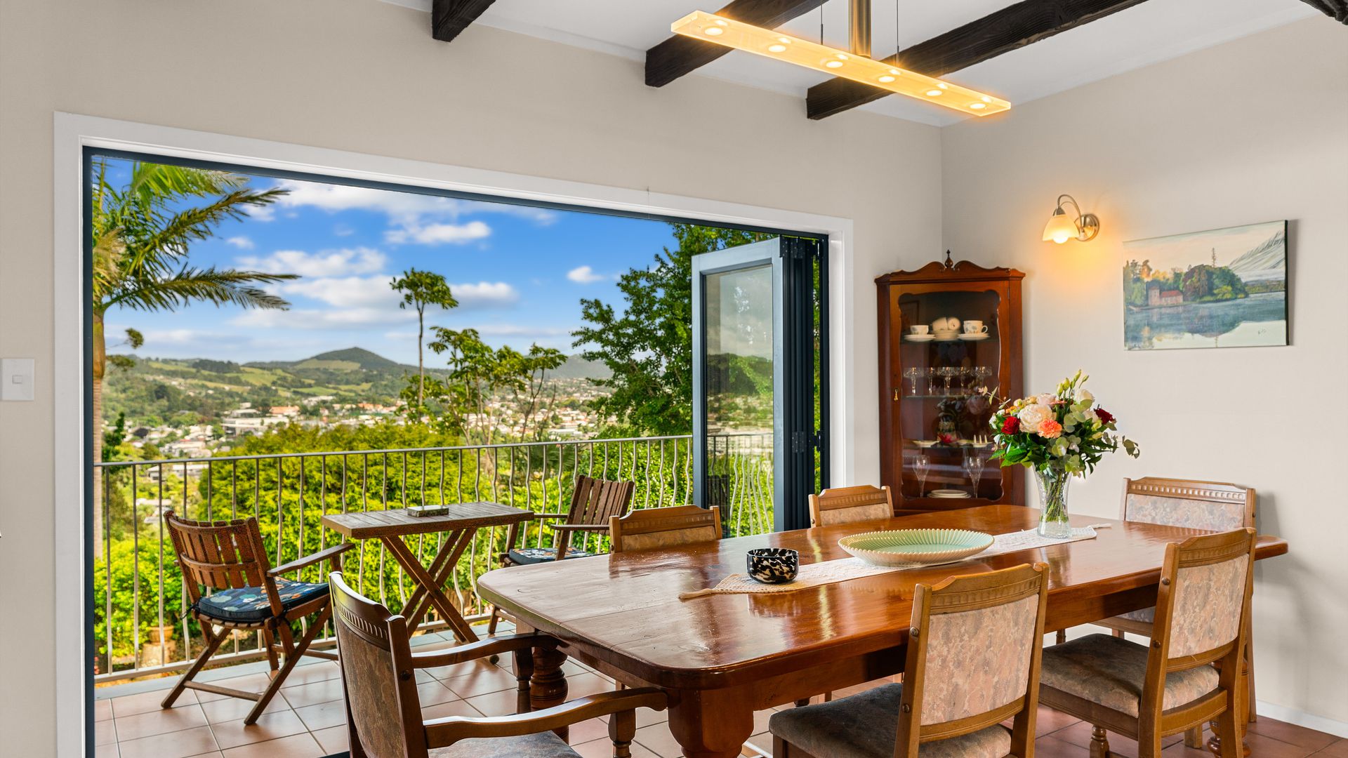 Upstairs, the main living level is warm, generous, and oriented to make the most of both light and view. Three well-proportioned bedrooms are supported by two bathrooms, including an ensuite off the master, while two separate living areas create natural separation between relaxed family living and entertaining. A modern kitchen anchors the space, the result of thoughtful renovation that sits comfortably within the home’s solid framework and connects seamlessly to the living areas and outlook beyond.