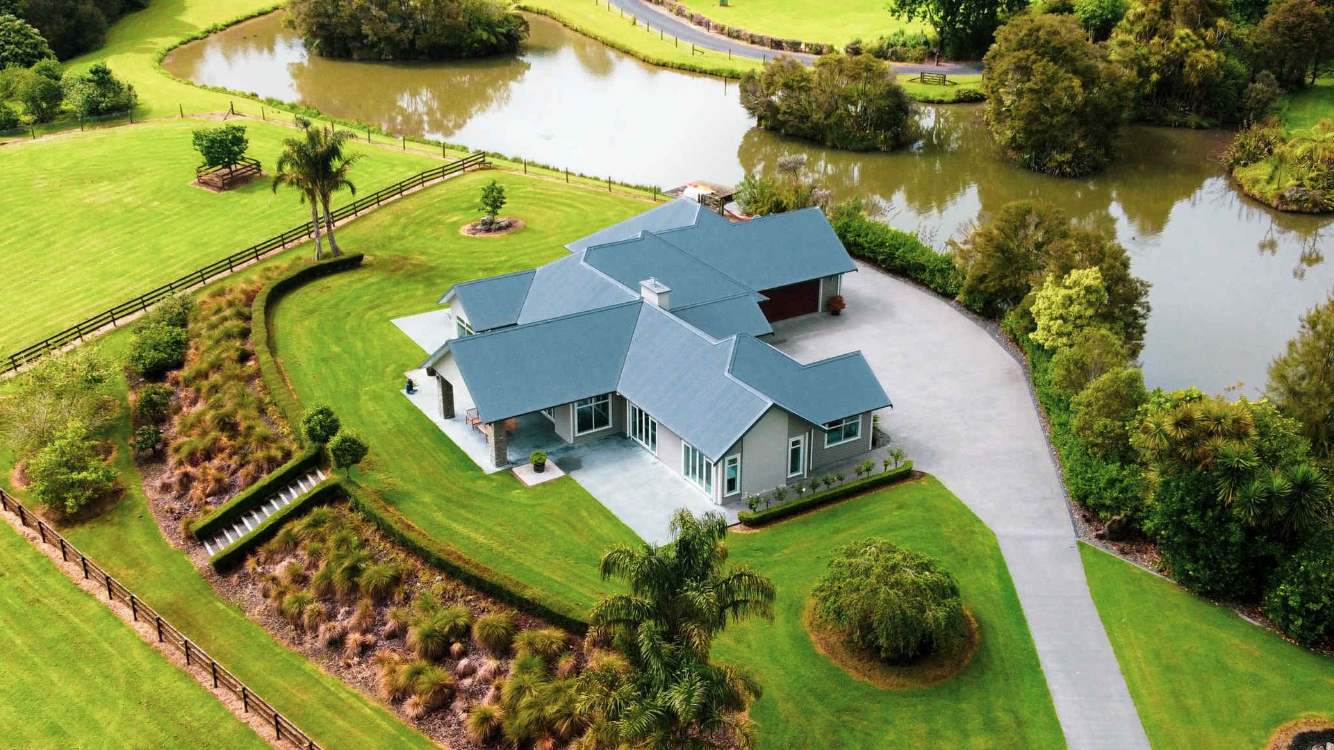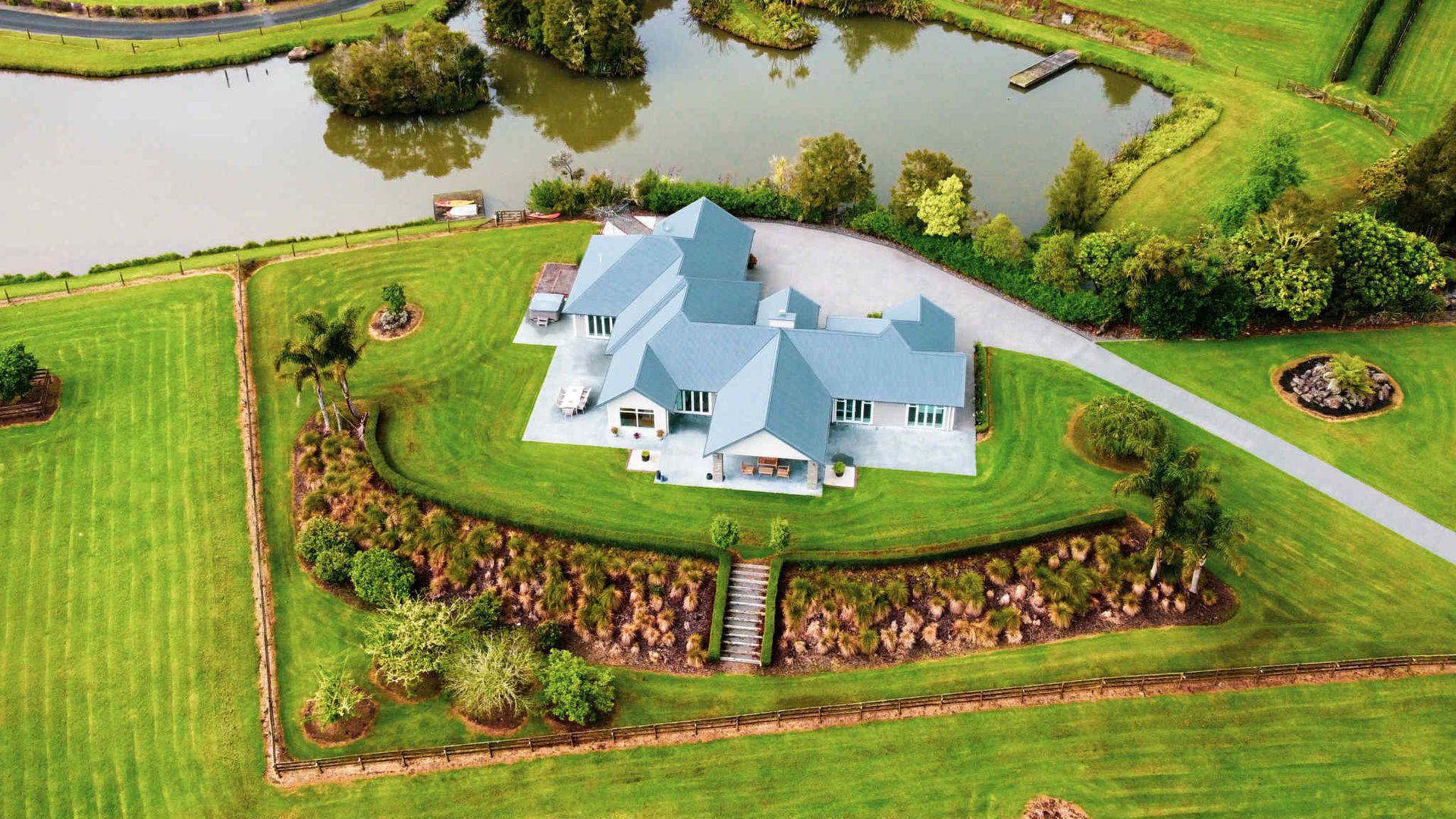 A separate three-bay shed takes care of the boat, the toys and the projects without stealing the show. Schools, services and city access are close enough for convenience, yet the sanctuary setting keeps life quiet and secure.