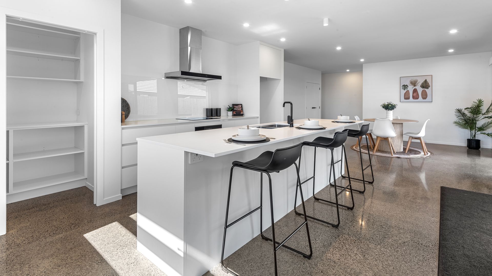 In coveted Kamo West, this near-new single level pairs quiet luxury with exacting detail. The charcoal facade and curated landscaping set a refined first impression. Inside, polished concrete draws the eye through a calm, gallery-bright plan where dining, living and kitchen combine as one coherent space.